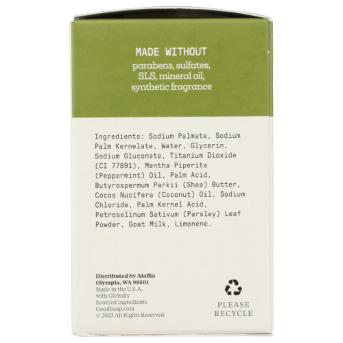 Good Soap by Alaffia is Oh So Good! Our Luxurious, Long-lasting Triple Milled Bar Soap provides a rich lather while moisturizing the skin. Made with Fair Trade shea butter from women-led cooperatives in West Africa. This peppermint-scented, ultra-hydrating bar soap comes with 4 big bars in one pack!