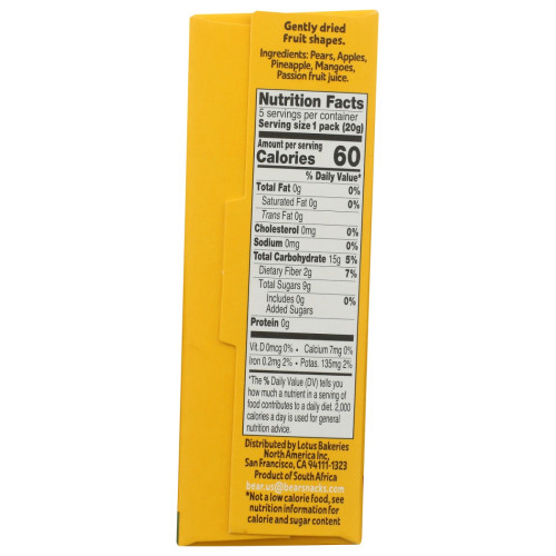 This flavor brings a fresh twist to BEARâs fruit bites lineup by adding tropical flair to the classic pair of pear and apple. It's an easy, guilt-free snack bursting with natural fruit flavor and perfect for families, active lifestyles, or anytime you want something wholesome and tasty.
