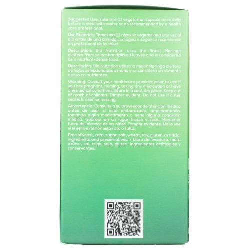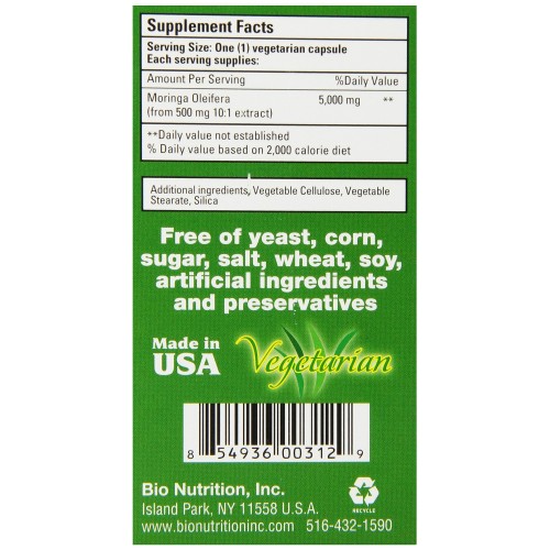 BIO NUTRITION: Moringa 5000 mg Super Food, 60 vegetarian capsules