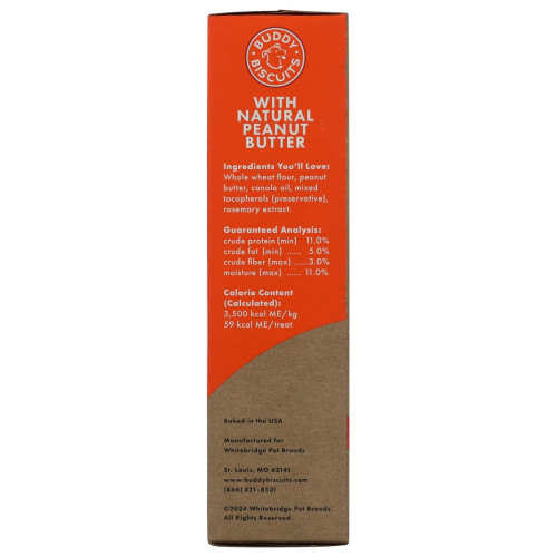 Perfect for training, rewarding good behavior, or just showing your pup some love, these peanut butterâflavored biscuits deliver both great taste and peace of mind. Whether at home or on the go, Buddy Biscuits make treat time healthier, happier, and more enjoyable for your four-legged companion.