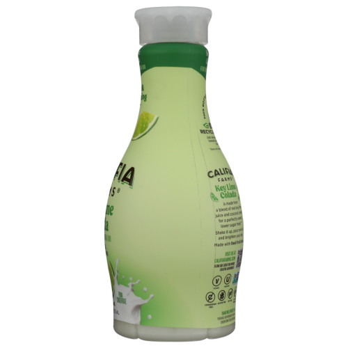 Califia Farms Key Lime Colada Refresher is a smooth, refreshing beverage made with real key lime juice, coconut cream, and coconut water for a perfectly balanced sweet-tart taste. Creamy yet light, this dairy-free drink delivers a tropical, mocktail-inspired flavor with about 50% less sugar than leading flavored coconut beverages. Crafted with simple, plant-based ingredients, itâs vegan, gluten-free, soy-free, and Non-GMO, making it an easy, feel-good option for everyday refreshment. Enjoy chilled, poured over ice, or as a mixer for fruity drinks and cocktails.
