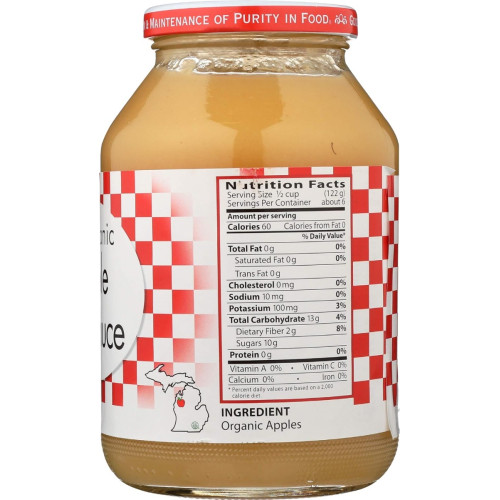 Eden Apple Sauce is made using traditional methods. Apples are hand-sorted, washed, peeled, cored, and put through a mill where they are sliced and chopped. Next, they are transferred to a stainless steel, steam injection cooker, where they are cooked into a thick sauce. The sauce is then strained and packed into glass jars.