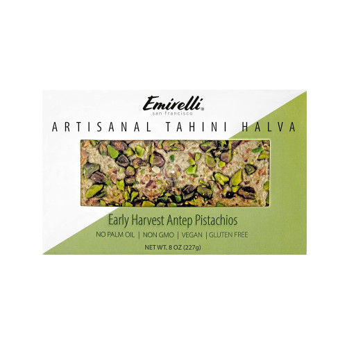 EMIRELLI: Artisanal Tahini Halva Early Harvest Antep Pistachios, 8 oz