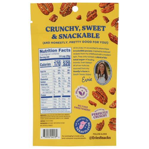 EVIES SNACKS: Roasted Banana Bread Pecans, 3 oz