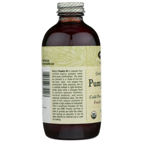 Looking for a new way to add some distinctive flavor, as well as a healthful boost, to your next salad or pasta dish? Flora Pumpkin Seed Oil brings a characteristic nutty flavor to the table, while Flora's unique method of cold pressing helps retain the original rich flavor. On top of providing omega -6s and -9s, the dark color of the natural, unrefined oil signifies a high content of chlorophyll.