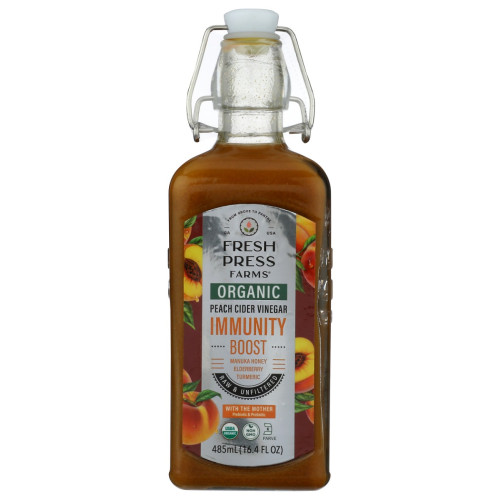 FRESH PRESS FARMS: Organic Peach Cider Vinegar Immunity Boost, 485 ml