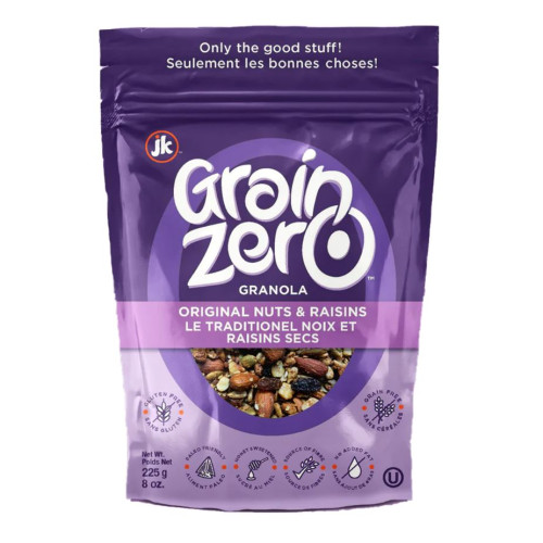 Our line of gluten-free and grain-free granola, with its wide array of flavours and fruit combinations, has many of our customers saying it's the best theyâve ever tasted. No grain or gluten in your diet? No problem! In every bag of Grain Zero Granola, youâll find heart-healthy nuts and seeds, nature or juice sweetened fruit, and a touch of honey (coconut and agave nectar for our vegan options); no fillers, no added oils - only the good stuff!