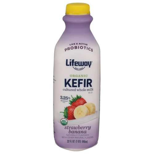 LIFEWAY: Organic Whole Milk Kefir Strawberry Banana, 32 fo