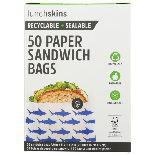 LUNCHSKINS: Paper Sandwich Bag Shark, 50 ct