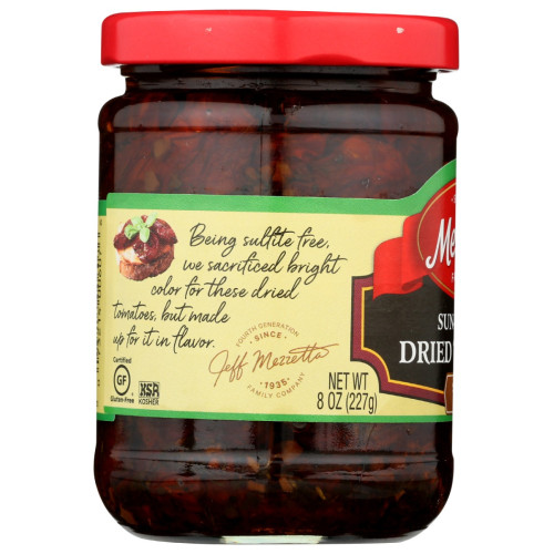 Mezzetta Sun-Dried Tomatoes in Olive Oil are made with farm fresh California ripe tomatoes. Dried whole under the California sun, they are packed with fresh herbs and olive oil. Their soft velvety texture and deep rich flavor is a must for delicious appetizers, pasta salads, sandwiches, pizza and pasta.
