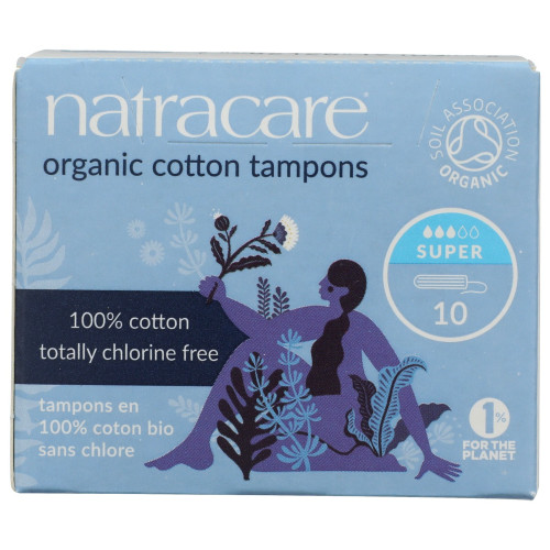NATRACARE: Super Non-Applicator Organic Cotton Tampons, 10 pc