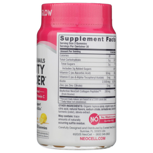 NEOCELL: Hair Skin and Nails Beauty Builder Lemon Flavor Gummies, 60 pc