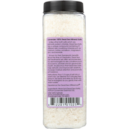 ONE WITH NATURE: Relaxing Lavender Dead Sea Mineral Bath Salt, 32 oz