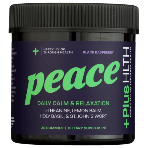 Unwind and find your inner calm with +PlusHLTH PEACE, unique black-raspberry gummies formulated specifically to help you navigate life's many stresses with ease. With PEACE, you can embrace each day with a renewed sense of tranquility. Say goodbye to stress and hello to a more balanced, centered you.