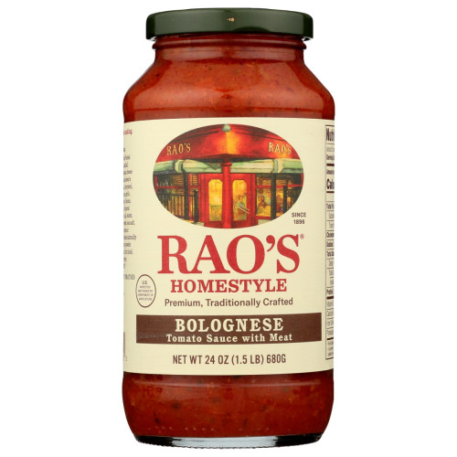 Bring home the famous taste of Raoâs Homestyle Bolognese. Our Bolognese sauce is a mouth-watering combination of naturally sweet, Italian tomatoes, beef, pork, pancetta and vegetables.
