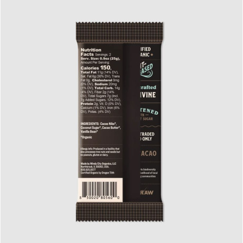 RAWMIO: Dark Chocolate Bar with Vanilla Bean, 1.76 oz