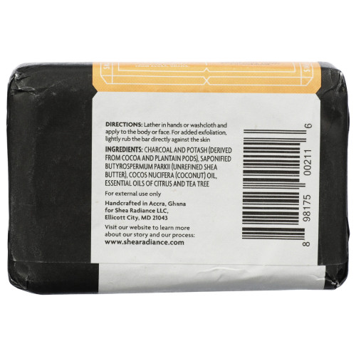 SHEA RADIANCE: African Black Soap Bar Citrus Tea Tree Oil, 5 oz