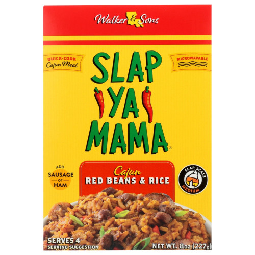 Slap Ya Mama just made home cooking that much easier and delicious! Slap Ya Mama Cajun Red Beans & Rice is a quick and easy fix for a busy lifestyle. If youâre looking for the flavors of a home cooked meal, look no further. You can choose to add sausage or ham or you can simply enjoy the flavor of our red beans & rice. Either way you have a great tasting meal for the family in a matter of minutes.