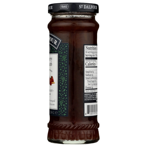 St. Dalfour Strawberry and Rhubarb is a premium, all-natural French spread crafted using a traditional small-batch method. Unlike standard jams, it is made from 100% fruit, using concentrated grape and date juices for sweetness instead of cane sugar or corn syrup. This creates a sophisticated flavor profile where the sweetness of sun-ripened strawberries perfectly balances the sharp, refreshing tartness of rhubarb. It is Non-GMO, gluten-free, and contains no artificial preservatives, making it a clean-label choice for toast, desserts, or gourmet glazes.
