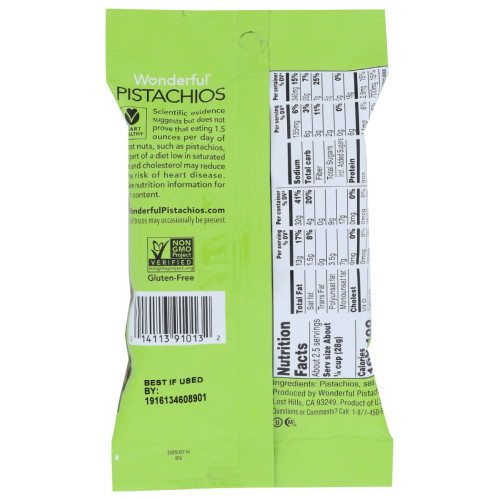 WONDERFUL PISTACHIOS: Roasted and Salted No Shells, 2.5 oz